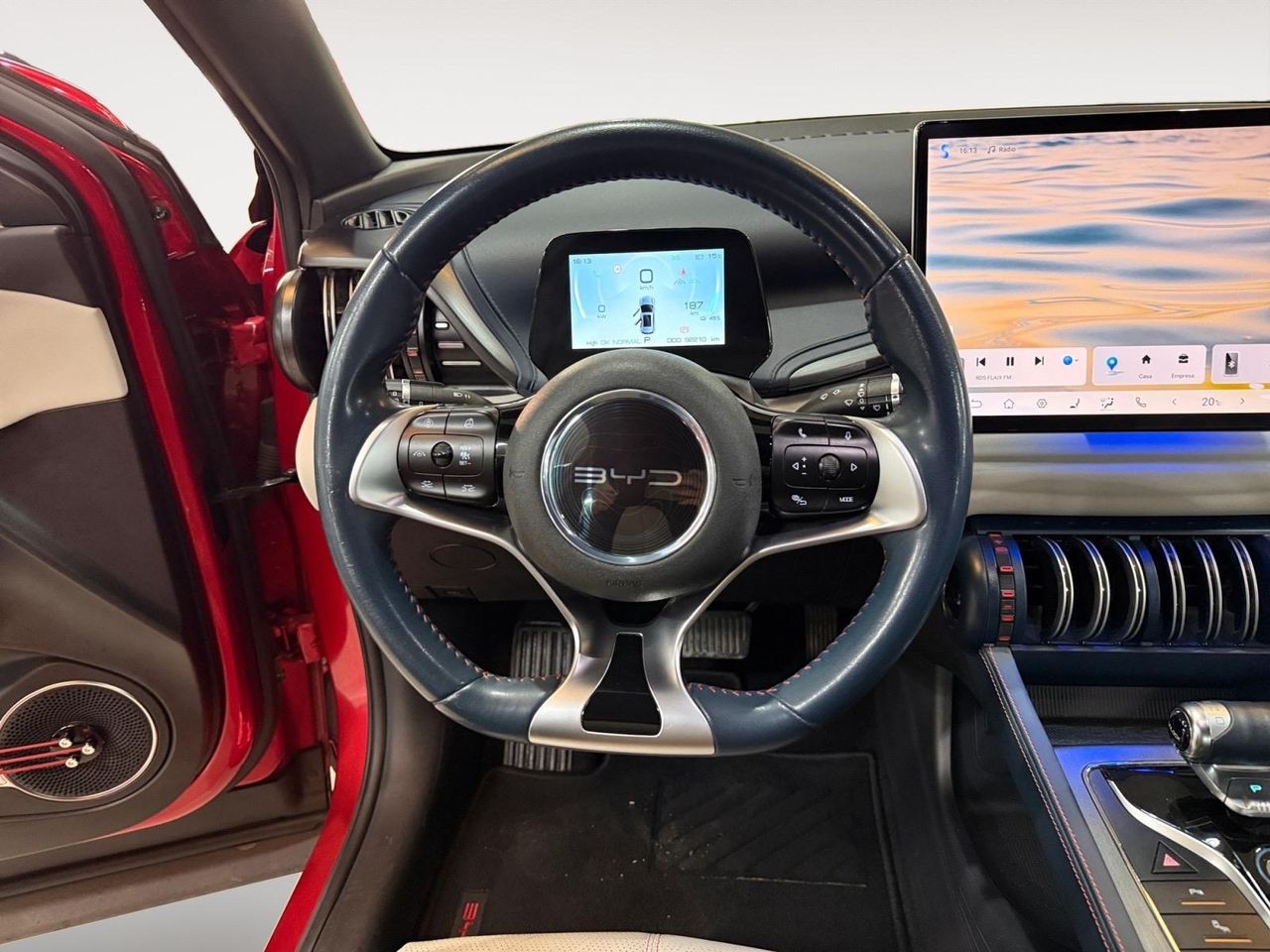 Acabados de lujo: pomo de la palanca de cambios en símil aluminio, consola central en titanio, puertas en símil aluminio y cuero sintético y tablero en cuero sintético