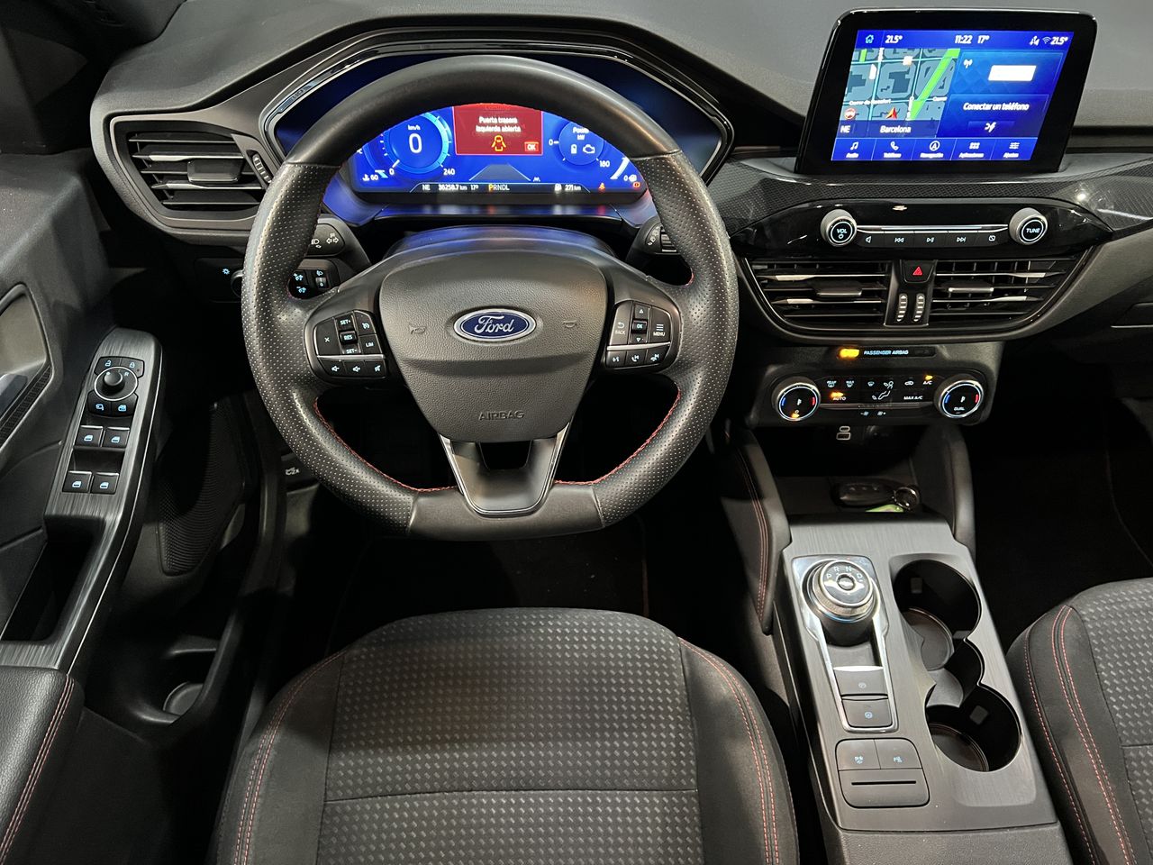 Este Ford Kuga ST-Line X 2.5 Duratec FHEV Auto destaca por su sistema híbrido autorrecargable que combina un motor de gasolina con uno eléctrico, ofreciendo 190 CV de potencia con un consumo eficiente de 5,4 l/100km. Su etiqueta ECO permite el acceso a zonas de bajas emisiones en ciudades con restricciones de tráfico.
