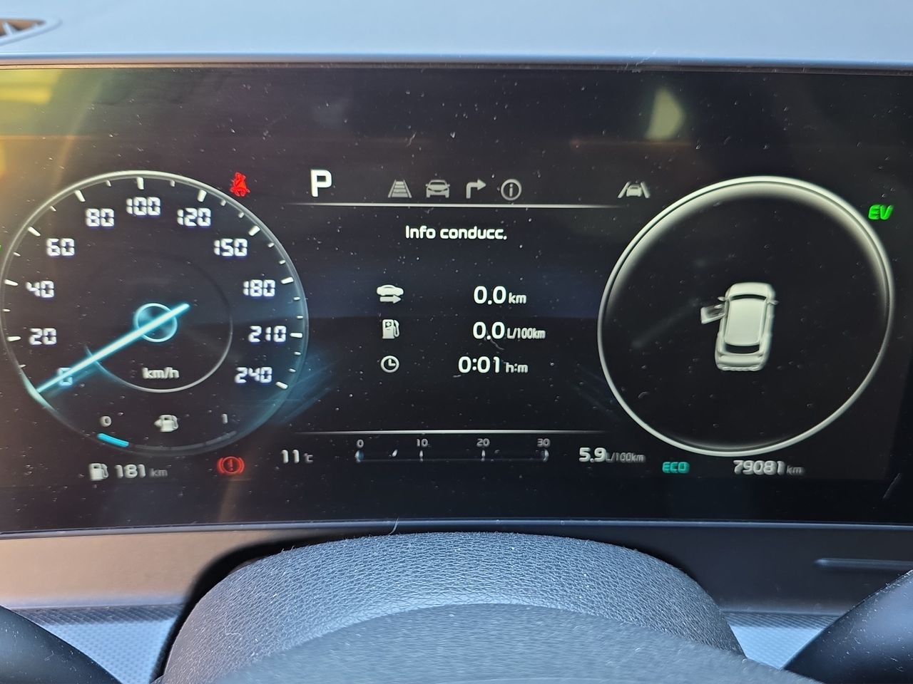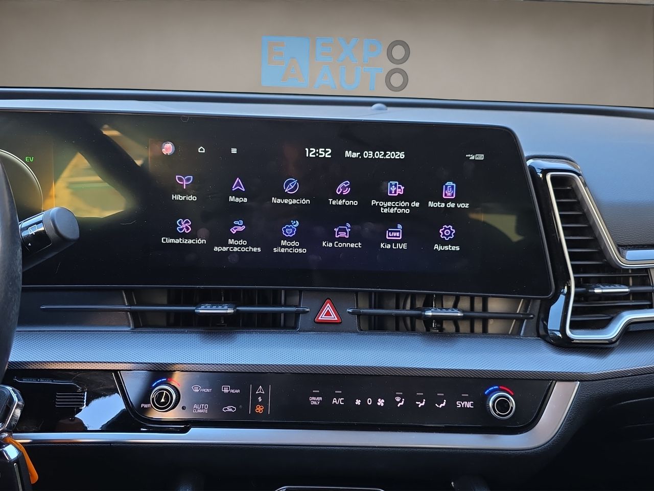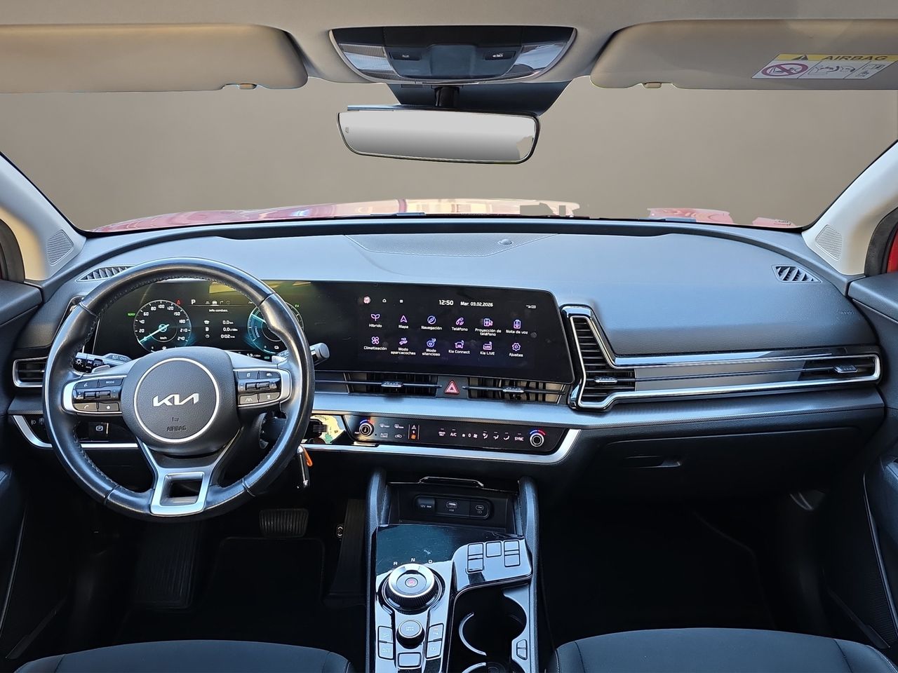 Este KIA Sportage híbrido destaca por su eficiente motorización de 230 CV que combina un motor de gasolina con uno eléctrico, ofreciendo un comportamiento ágil y un consumo contenido de 5,6 l/100km. La etiqueta ECO permite el acceso a zonas de bajas emisiones en ciudades con restricciones de tráfico, una ventaja cada vez más relevante para la movilidad urbana.
